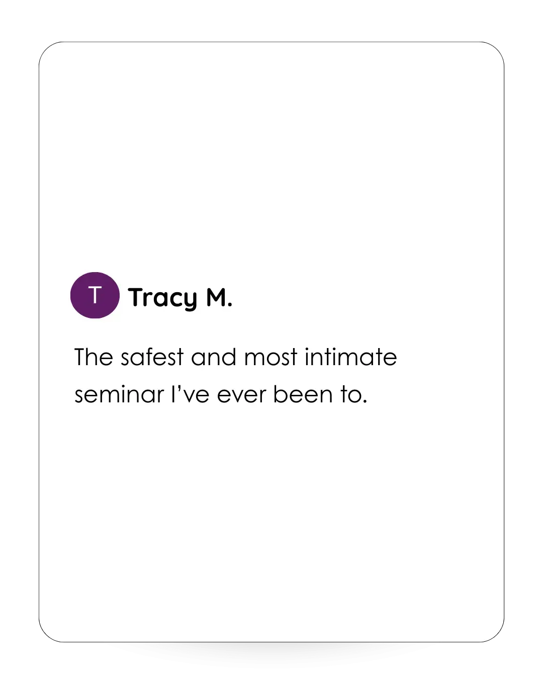At our seminars, we create a sanctuary—one rooted in safety, care, and deeply seasoned training. Each participant is met where they are
