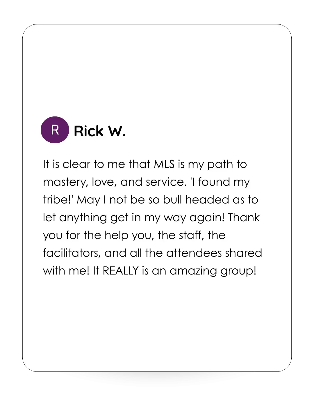 MLS emphasizes embodiment over information, presence over performance, and depth over volume. The work is meant to be felt, practiced, and lived — not just learned.