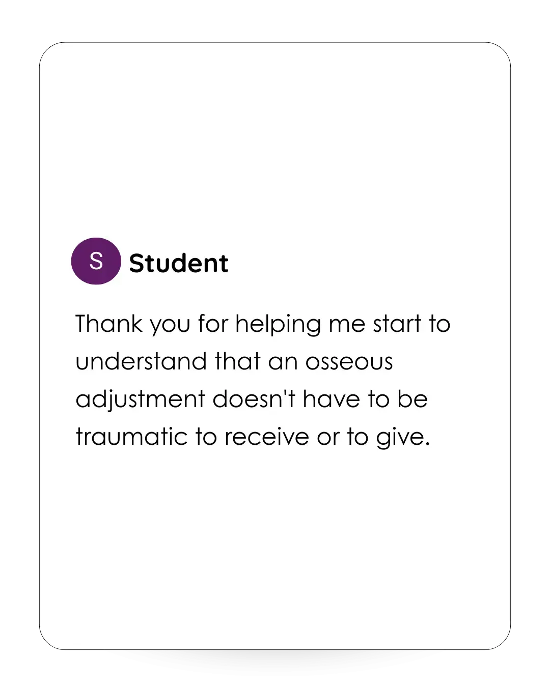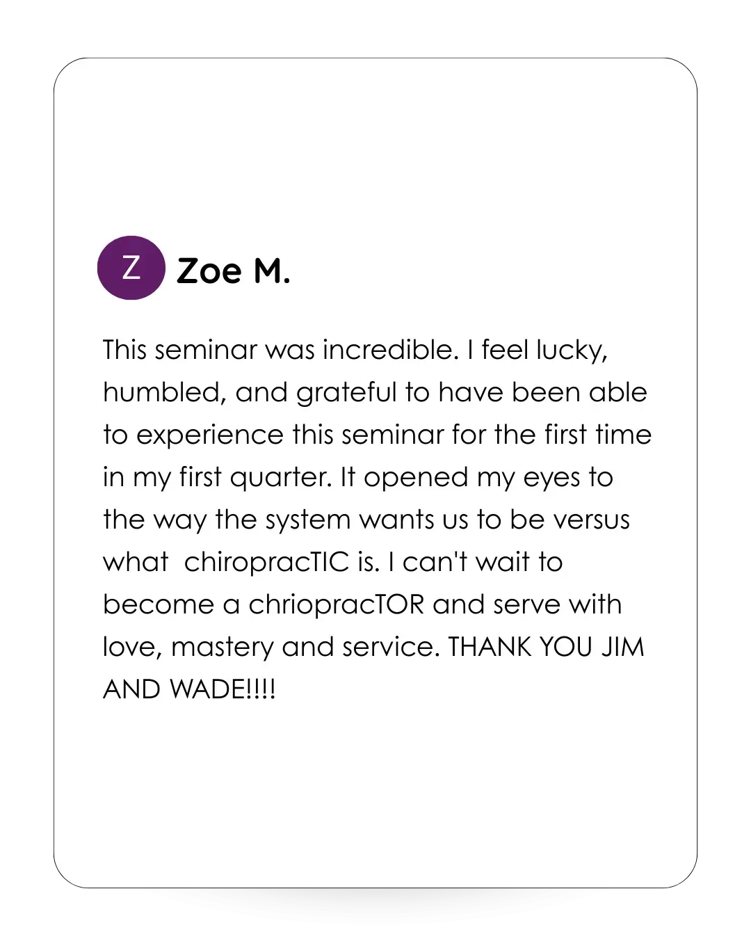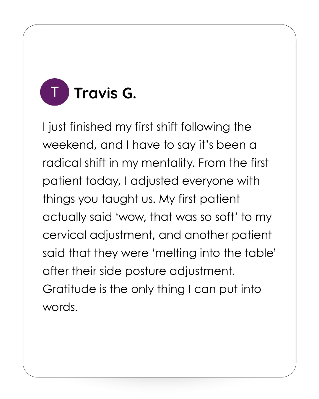 The roadmap is already in place. With over 40 years of experience teaching and training chiropractors, we know how to guide this work with clarity and intention. There is space for you here—and the schedule is designed to honor both speed and accuracy. Our goal is to support real growth, quickly—so you can bring that growth back into your practice and your community,