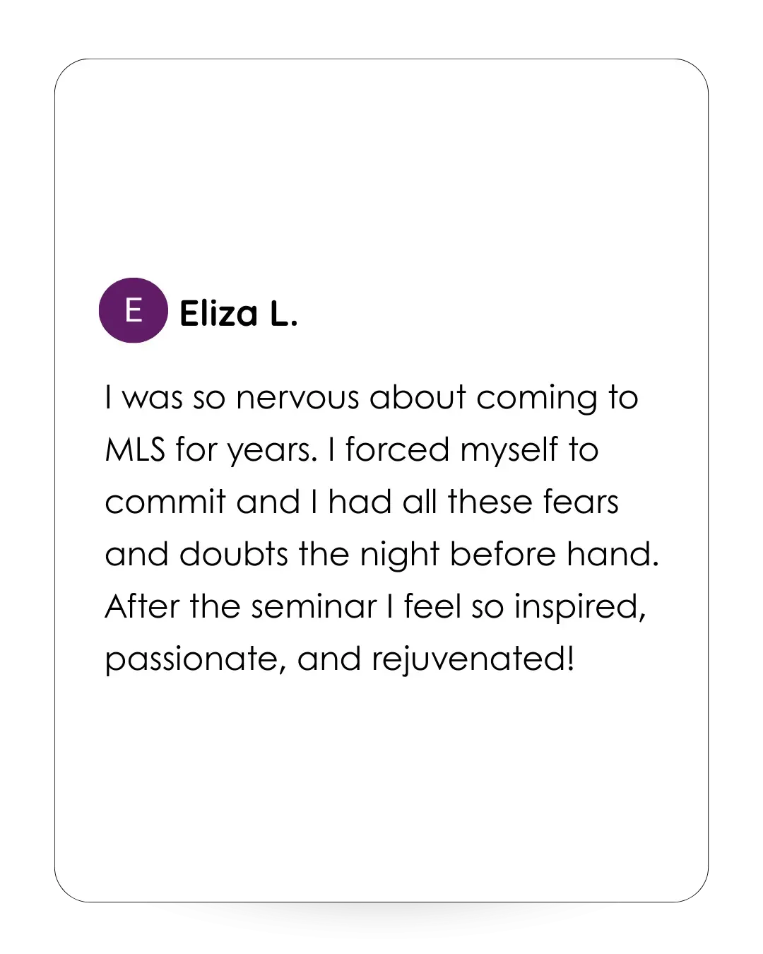 Spend 10 minutes with one of our team members in Zoom to discover how MLS Seminars can support and nurture your practice journey.
